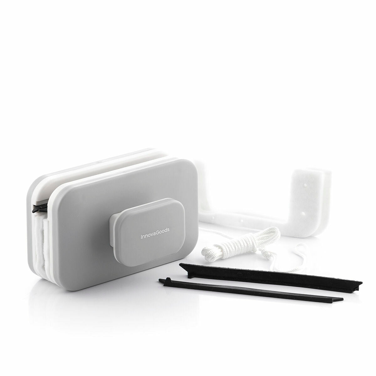 Klinduo InnovaGoods magnetisk fönsterputs gör det enklare och bekvämare att rengöra glasytor, såsom fönster, glasskärmar, skjutdörrar osv. Tack vare sin originella dubbelsidiga magnetiserade utformning är den till stor hjälp vid städning och sparar tid och ansträngning. Denna magnetiska fönsterputs putsar de främre och bakre glasytorna samtidigt, vilket underlättar en noggrann och effektiv rengöring.